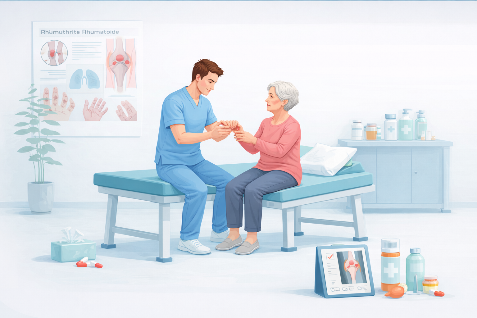 Vos kinésithérapeutes s’occupent de vous en matière de rhumatologie. La rhumatologie est une technique médicale qui consiste à traitter les maladies ou les douleurs des articulations, des os et des muscles, notamment des membres et de la colonne vertébrale. Nous retrouvons ici notamment des pathologies telles que des maladies inflammatoires, l'algoneurodystrophie ou la polyarthrite rhumatoïde par exemple.